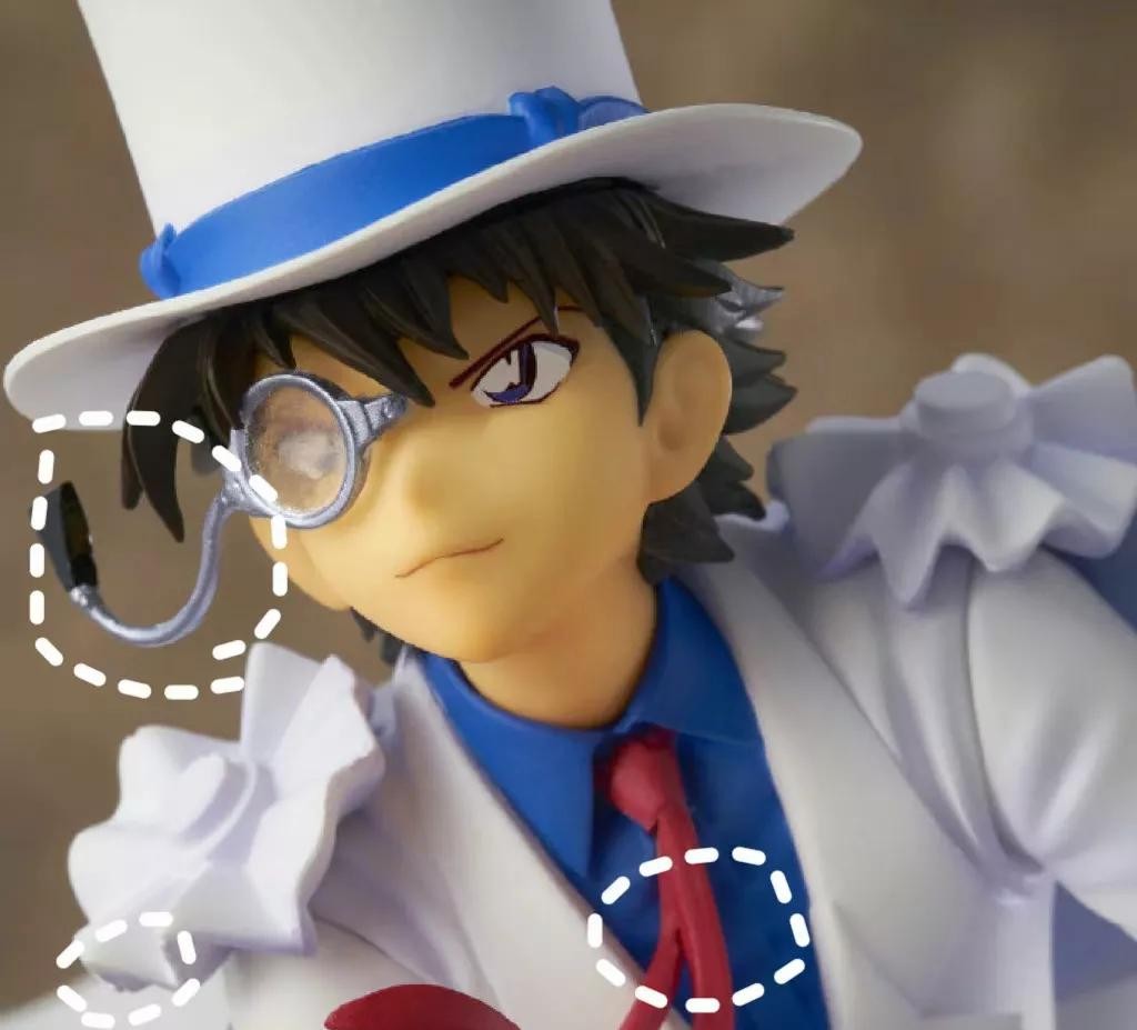 这是其他玩家pO出怪盗基德,图中围出了几处细节,领带结那的凹凸不平、银色眼镜腿有坑洼。