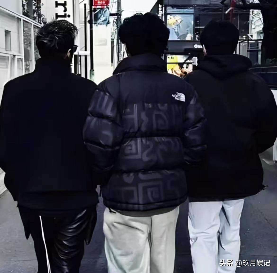 三人都穿着深色上衣同框走在街上画面十分温馨,即使离婚了也没有缺失对孩子的爱。