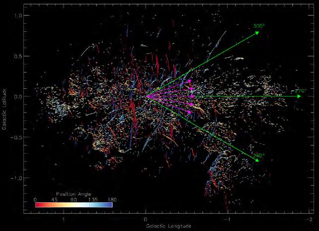 不过,Yusef-Zadeh 那时发现的这些垂直细丝的产生原因至今仍未得到解释。为此,Yusef-Zadeh 和他的同事们进行全面调查,部分原因是为了更好地了解神秘的垂直细丝的起源和性质,这也让他们如今又发现新的较短的丝状物。
