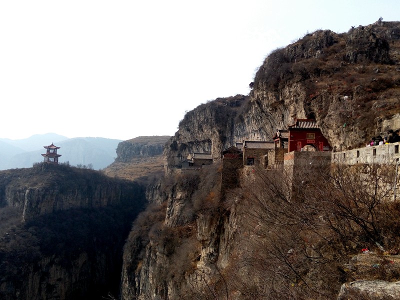金灯寺位于河南省林州市与山西省平顺县交界的太行山之巅,院落很窄,南北狭长,东边是望不见底的万丈深渊,院落的西崭绝壁上,凿了许多个石窟,石窟里雕刻有大大小小形态各异的佛像。
