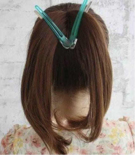 2、然后把马尾辫分成两部分,用夹子固定好,因为接下来要用卷发棒把头发烫一下。