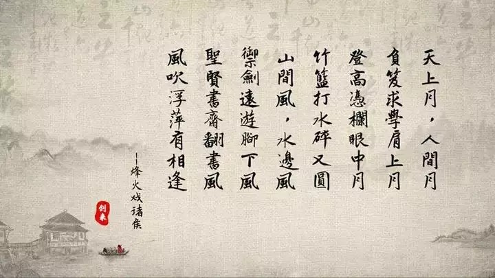 天上月,人间月,负笈求学肩上月,登高凭栏眼中月,竹篮打水碎又圆。 山间风,水边风,御剑远游脚下风,圣贤书斋翻书风,风吹浮萍有相逢
