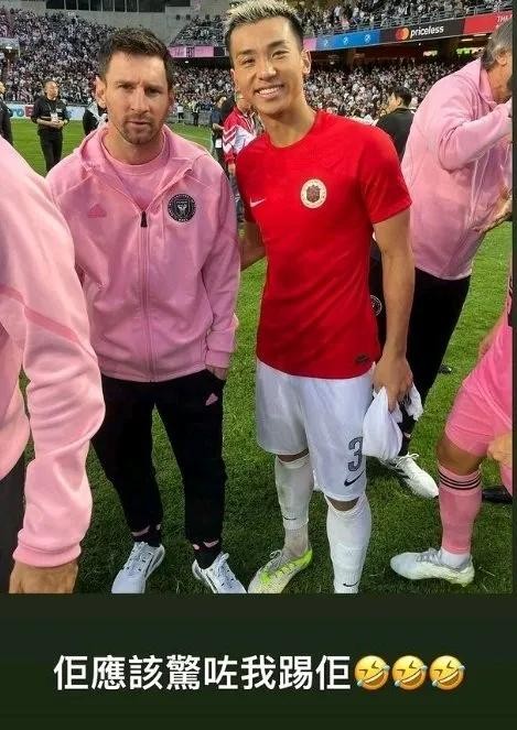 赛后的合影时刻,梅西选择站在最后排,几乎躲在人群中不愿露脸。在与中国香港球员的合影中,梅西表情严肃,紧皱眉头,双手插兜,给人一种不太礼貌的印象。