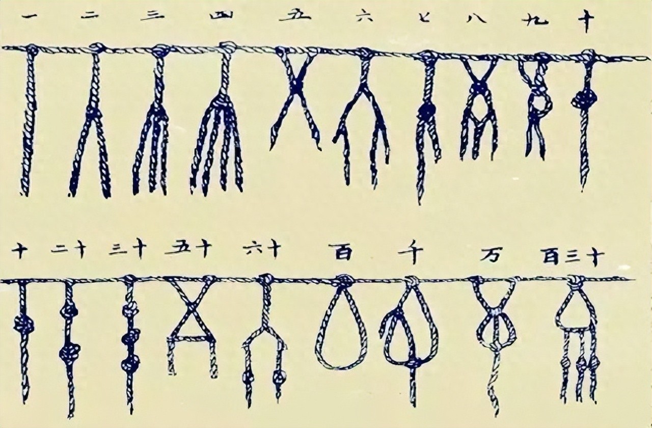 在古代,为了将本部落某些重大事件记录下来并流传下去,人们便用不同材质和粗细的绳子,在上面结成不同距离的结,而结成的结又有大有小。