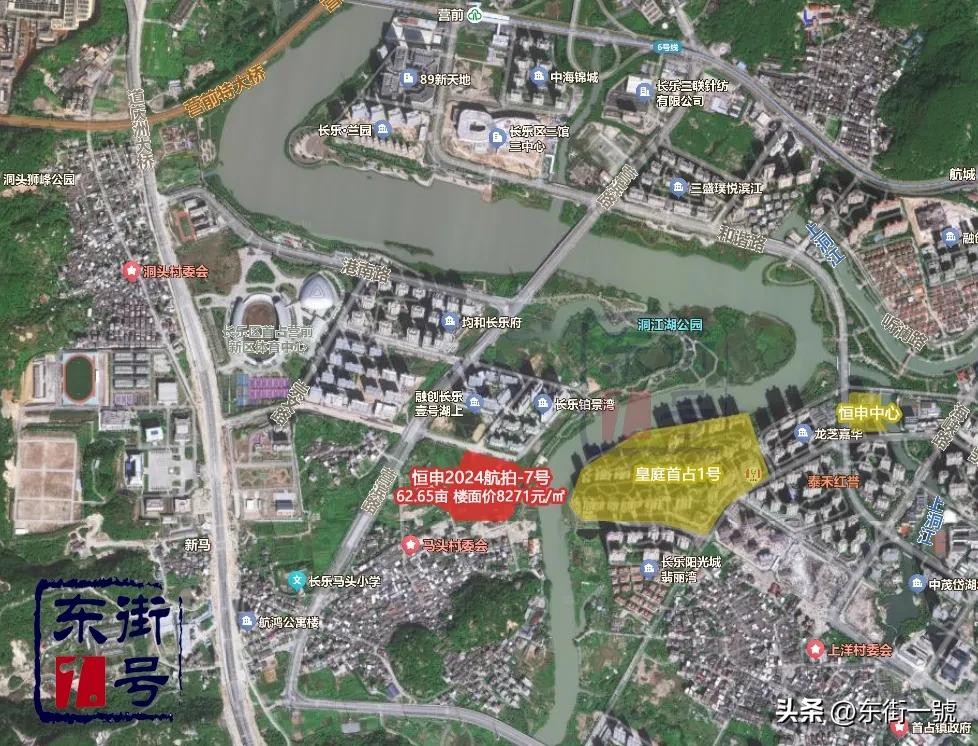 说回恒申这次拍的2024航拍-7号地块,作为容积率上限仅1.1的洞江湖畔宅地,未来有望打造成品质墅区。值得一提的是,地块对面也是恒申开发的豪宅——皇庭首占1号,作为2017年交房的260亩大盘,如今二手房挂牌价高达2.1万/㎡。