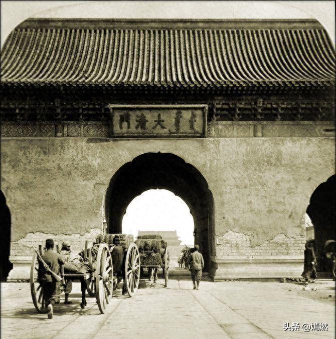 07 1901年拍摄的“大清门”,右边是满文,左边是汉字。照片中,透过城门可以看到天安门。大清门是紫禁城(故宫)的南门,始建于明朝永乐年间