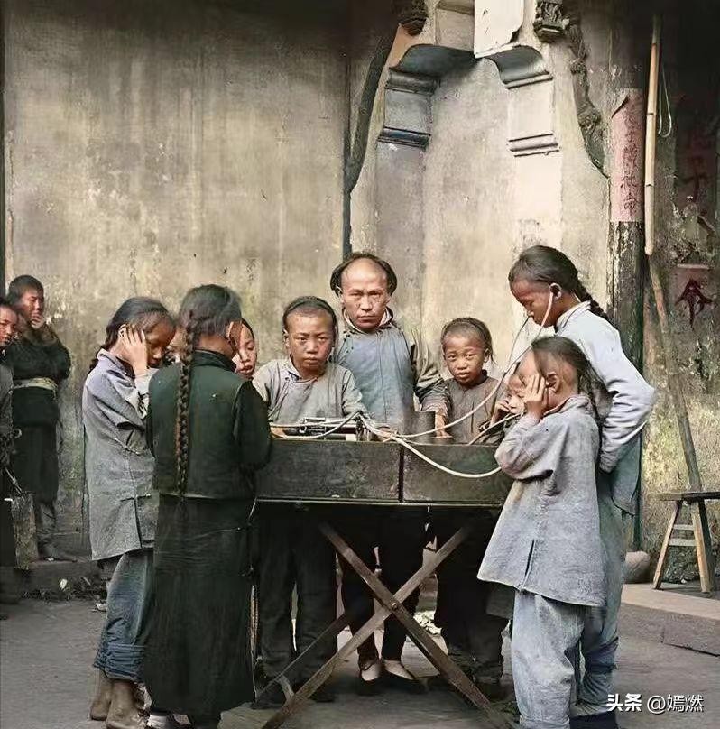 16 听留声机的孩子们,在100多年前的清末,留声机肯定是高科技的存在了。