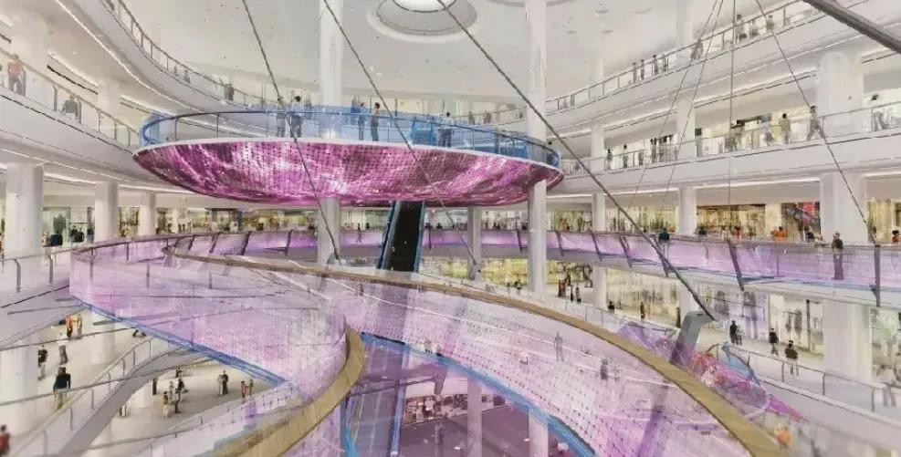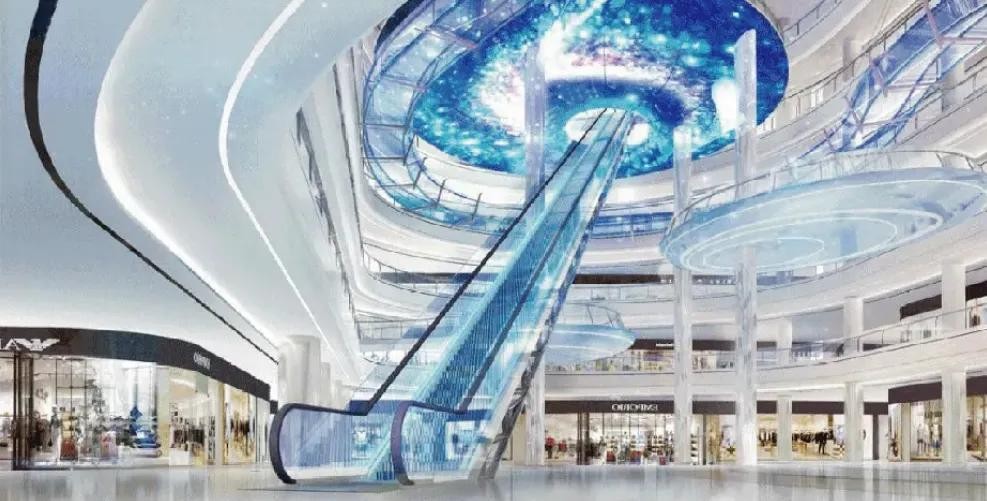 鹏程九天:1500平方米的超大中庭规划建设30米的飞天扶梯,可感受直冲“云”端的快感,扶梯贯穿六层,穿过“天眼,仿佛进入未来世界。