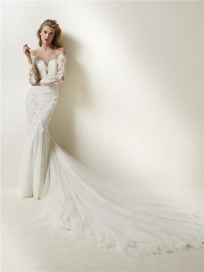 1、想让抹胸婚纱不下滑,不要依赖胸部,要依赖腰部。腰部和腹部的线条收的合适,它是不会下滑的。有些抹胸婚纱,试穿的时候很适合,但是穿着穿着就松了,这个可以用别针或者缝合一下。