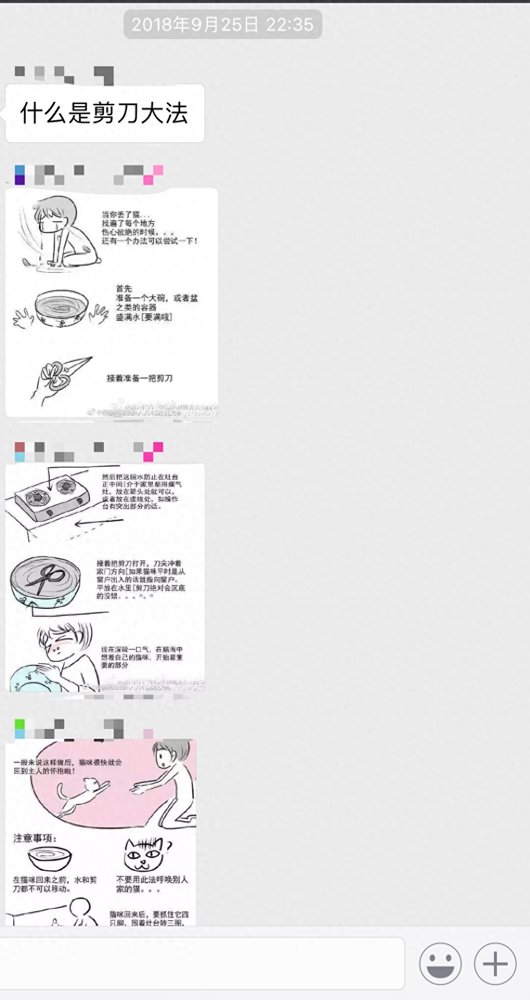 前段时间,群里的铲屎官猫咪走失了,有了很多方法都没有找到,最后没办用上了“剪刀找猫大法”当时引起了大家的热烈讨论。